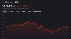 Ethereum, Ağustos ayında 4.946 dolar ile tüm zamanların en yüksek seviyesine ulaştı. Yazı sırasında ETH, %1 düşüşle 4.578 dolar civarında işlem görüyordu.
