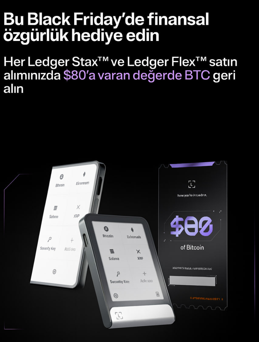 20 Kasım – 21 Aralık arası kampanya dönemi, Ledger ürünlerine yatırım yapmak isteyen herkes için eşsiz bir fırsat sunuyor. Stax ve Flex modellerinde verilen Bitcoin ödülleri, alınan ürünü daha da değerli hâle getirirken Nano X’teki önemli indirimler de bütçesini korumak isteyen kullanıcılar için büyük bir avantaj sağlıyor. Kısacası, donanım cüzdan güvenliğini artırmak, yatırım araçlarını kendi cüzdanında saklamak veya Ledger ekosistemine giriş yapmak isteyen herkes için bu kampanya kaçırılmayacak bir dönemdir.