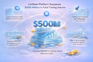 - Ekim 2025 ortasında işlem hacmi 100 milyon doların üzerine çıktı: Platform büyümesini sürdürerek Ekim ayının ortasında 100 milyon doların üzerinde nominal işlem hacmine ulaştı. Bu veri, Limitless’ın büyüme ivmesini koruduğunu ve kullanıcı aktivitesinin artmaya devam ettiğini gösteriyor.