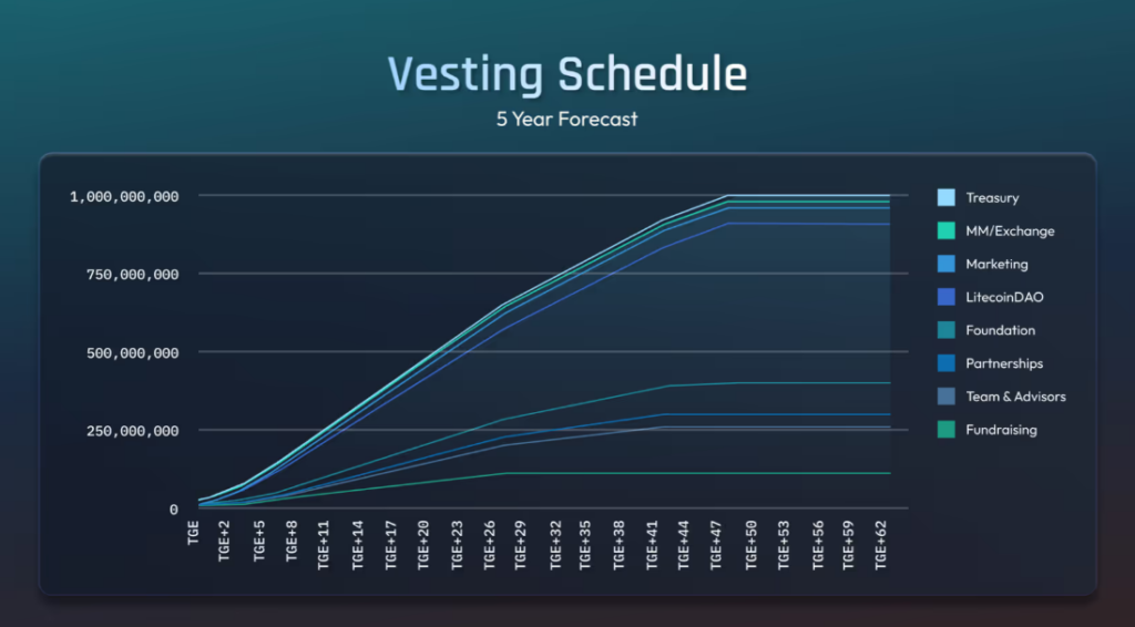 Tüm token’lar 5 yıllık vesting planına tabidir ve dağılım zamana yayılır.