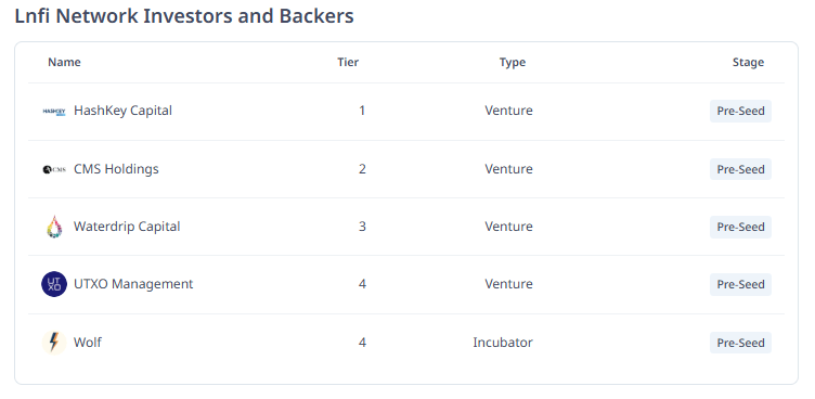 Lnfi Network (LN) Yatırımcılar ve Destekçiler