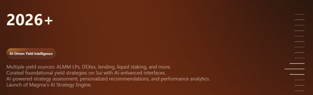 2026+ dönemi için AI destekli yield stratejileri: ALMM LP’leri, DEX’ler, lending ve liquid staking dahil çoklu getiri kaynakları.