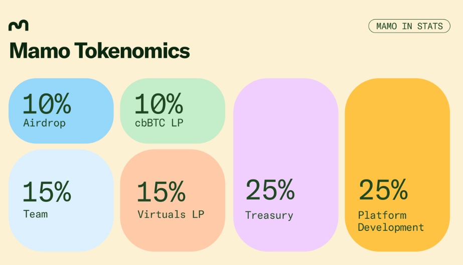 MAMO token, Base ağı üzerinde bulunur. Toplam arz 1.000.000.000 MAMO’dur. Başlangıçta ekip veya yatırımcı için herhangi bir unlock yoktur ve dağıtım tamamen şeffaf ve adil şekilde tasarlanmıştır.