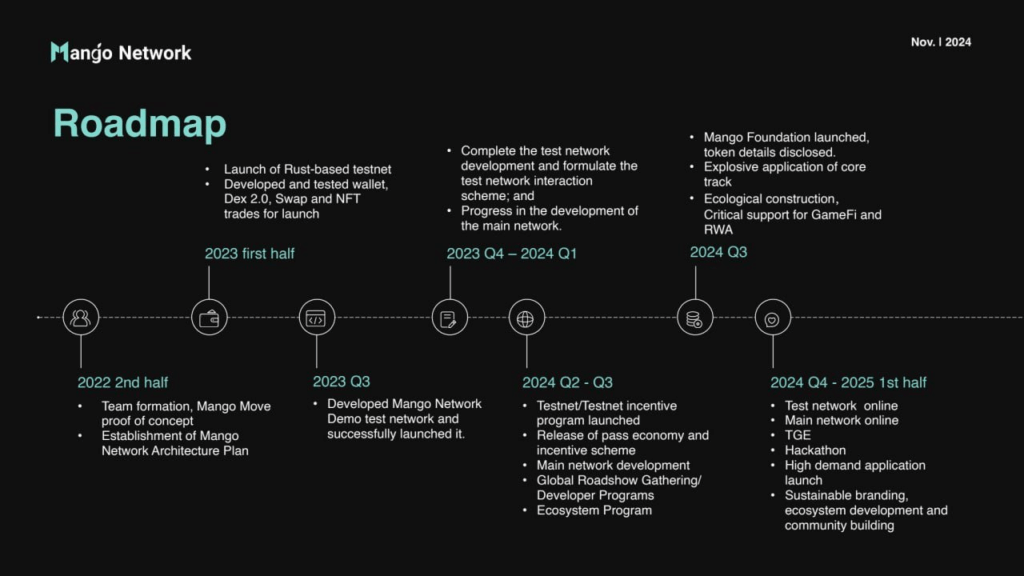 • Q3 2024, Mango Foundation kuruldu, tokenomik paylaşıldı, GameFi & RWA desteği