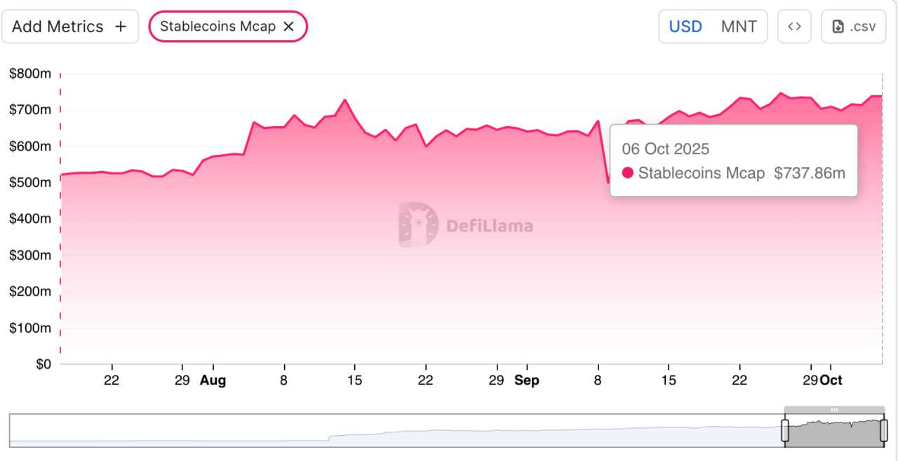 Geçen hafta, World Liberty Financial, 3 milyar dolarlık 1 USD stablecoin’ini Mantle ağında konuşlandırdığını duyurdu. Bu entegrasyon, ağın stablecoin piyasa değerini 738 milyon dolara yükseltti ve zincir içi likiditenin derinleşmesine katkıda bulundu. Stablecoin’ler blockchain ağlarına istikrarlı bir değişim ortamı sağlar, bu da kullanıcı güvenini ve işlem hacmini artırarak MNT fiyatını destekler.