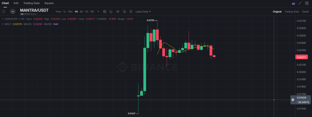 Piyasa değeri sıralamasında #262’de olan MANTRA, orta ölçekli tokenler kategorisinde yer alıyor; yüksek volatiliteye açık, fakat kurumsal likiditeye de sahip.