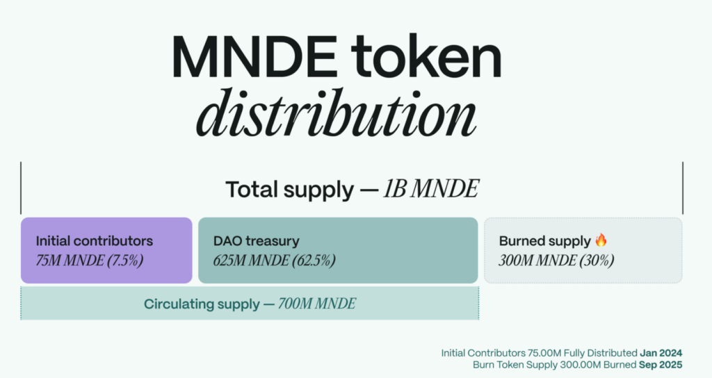 Eylül 2025: 300 milyon MNDE token yakımı gerçekleştirilerek toplam arz 700 milyon MNDE’ye düşürüldü.