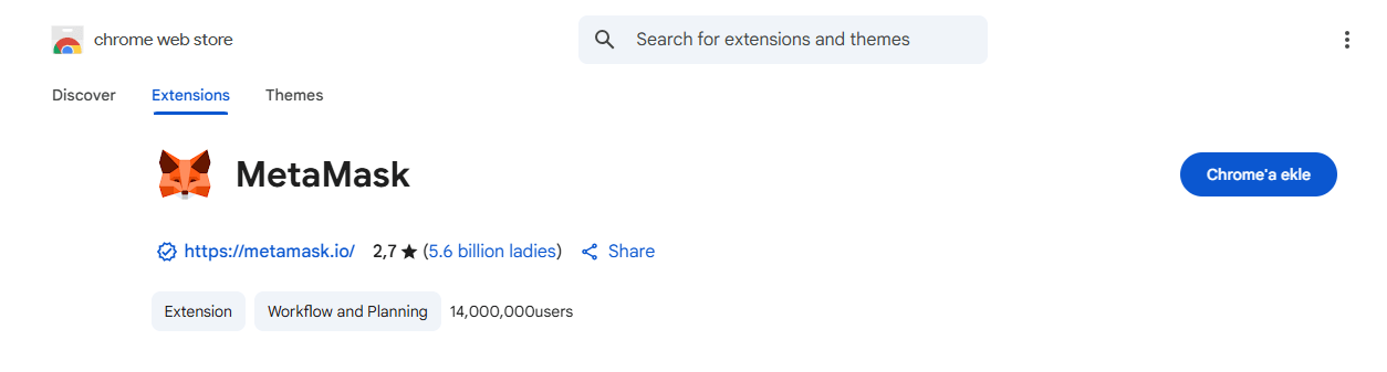 MetaMask Chrome Tarayıcı Eklentisini Kurma