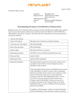 Japonya merkezli halka açık şirket Metaplanet, Bitcoin yatırımlarını artırmak amacıyla dikkat çeken yeni bir finansman adımı attı. Şirket, sıfır faizli 8 milyar yen yani yaklaşık 50 milyon dolar tutarında kurumsal tahvil ihraç ettiğini duyurdu. Bu adım, şirketin düşük maliyetle kaynak sağlayarak agresif bir şekilde Bitcoin birikimini sürdürmek istediğini gösteriyor. Elde edilen kaynağın doğrudan Bitcoin alımlarında kullanılacak olması, Metaplanet’in kripto varlıkları bilançosunda stratejik bir merkez konumuna yerleştirdiğini ortaya koyarken, uzun vadeli değer artışı beklentisinin de güçlü olduğunu işaret ediyor.