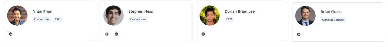 Metaplex, Nhan Phan (CTO ve Kurucu Ortak), Stephen Hess (Kurucu Ortak), Dorian Brian Lee (CEO) ve Brian Grace (Genel Danışman) tarafından yönetiliyor.