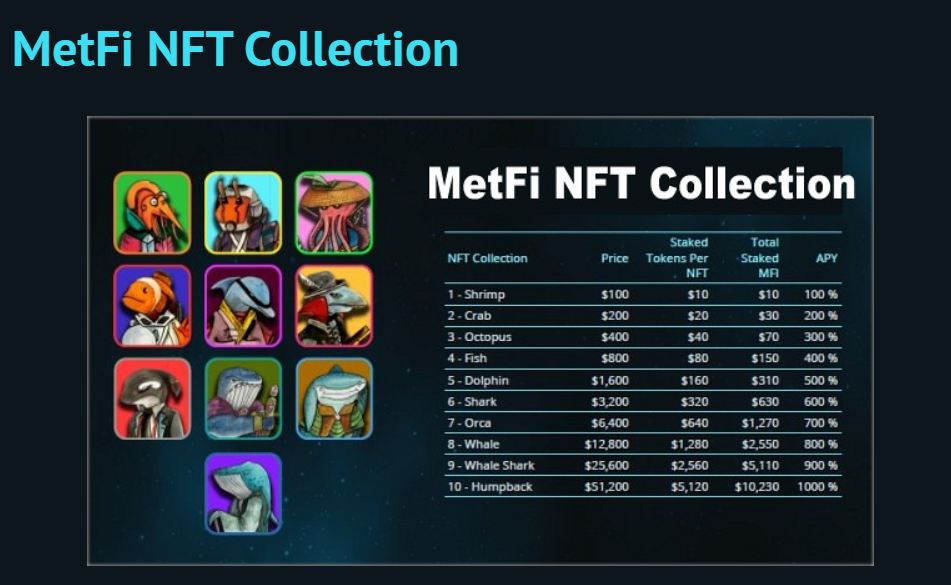 Staking ve Getiri: Alınan her NFT, içinde belirli miktarda METFI token ile gelir. Bu tokenlar NFT içinde stake edilir ve kullanıcılara 12 saatte bir bileşik getiri (rebase) sağlar.