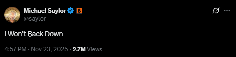 Şirketin kurucusu ve başkanı Michael Saylor ise X üzerinden yaptığı açıklamada kararlılığını yineledi ve geri adım atmayacağını belirtti.
