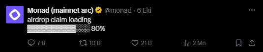 Monad airdrop süreci, kripto topluluğunda büyük bir heyecan yaratıyor. Projenin %80 tamamlanma oranı, MON tokenlerinin dağıtımına yönelik hazırlıkların son aşamada olduğunu gösteriyor ve bu süreç, hem kısa vadeli kazanç fırsatları hem de uzun vadeli değer potansiyeli sunarak topluluk katılımını artırmayı hedefliyor.