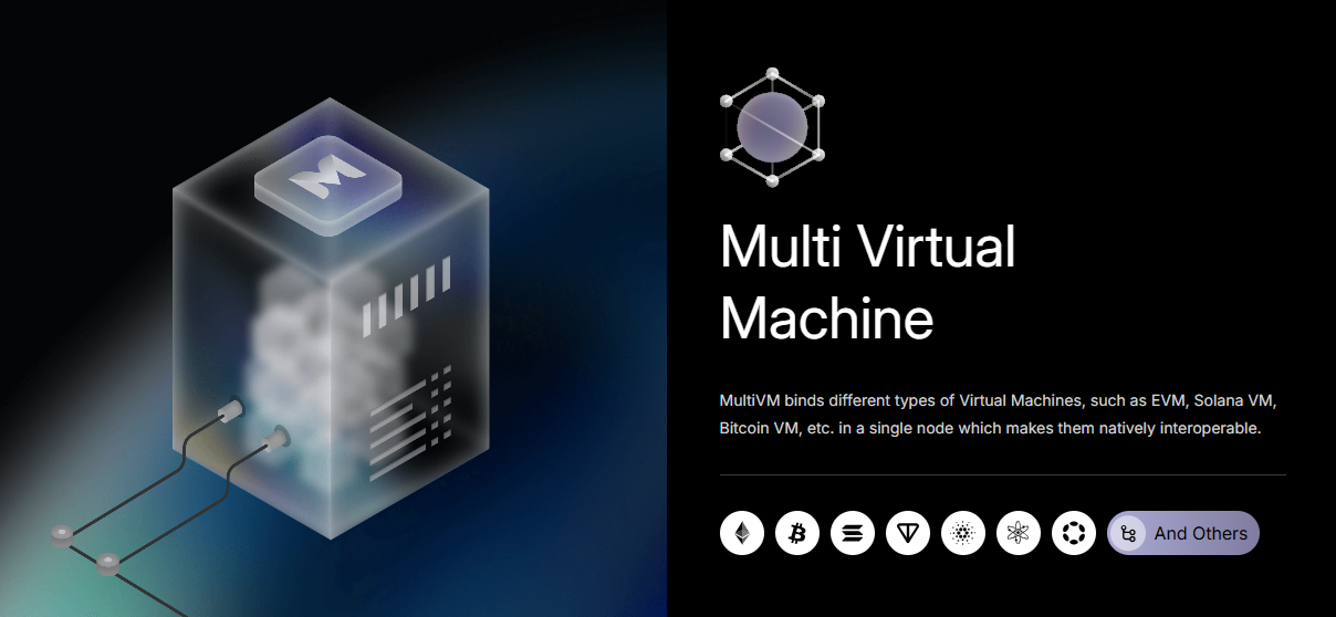 MultiVM, Ethereum ile tam uyumlu çalışan ancak çok daha yüksek ölçeklenebilirlik potansiyeline sahip, güvenli ve çoklu programlama dili destekli bir akıllı kontrat yürütme ortamıdır. Temel olarak farklı sanal makinelerin (VM) aynı blokzincir üzerinde birlikte çalışmasına olanak tanır.