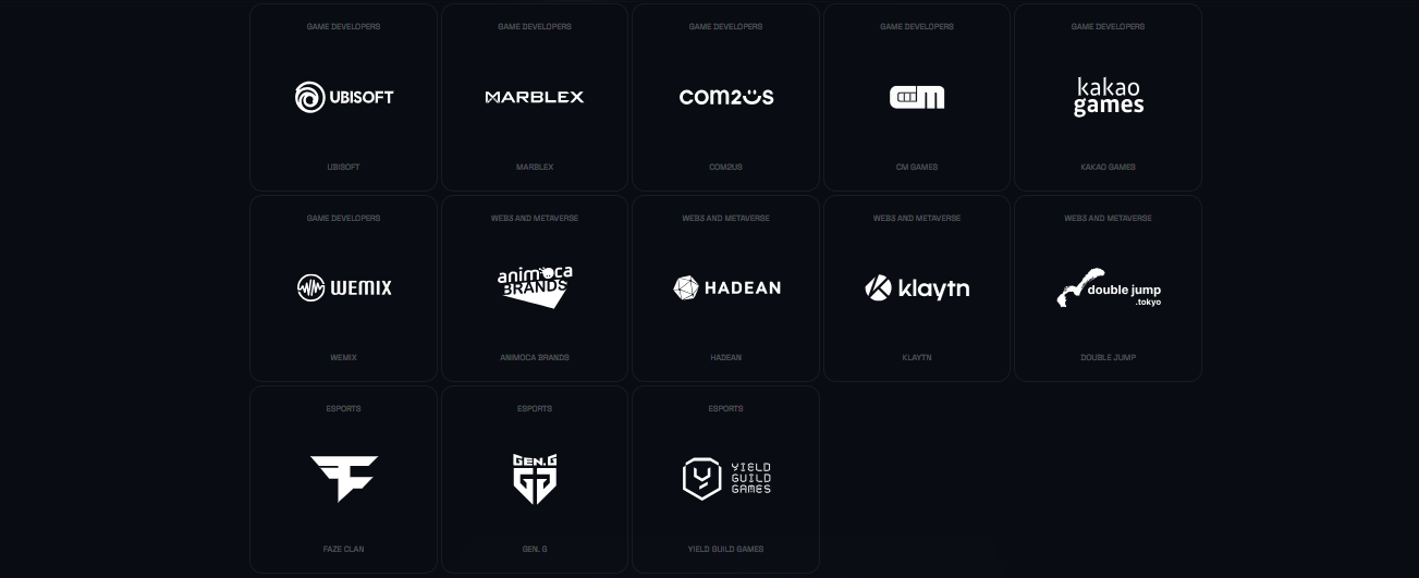 Mythos, oyun ve Web3 ekosistemini güçlendirmek için Ubisoft, Marblex, Com2uS, CM Games, Kakao Games, Wemix, Animoca Brands, Hadean, Klaytn, FaZe Clan, Gen.G ve Yield Guild Games gibi lider firmalarla iş birliği yapar. Bu ortaklıklar, Mythos’un AAA oyunlar ve merkeziyetsiz finansal sistemler geliştirmesine olanak tanır.