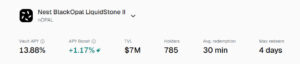 Bu veriler, kasanın güçlü bir getiri profiline sahip olduğunu ve likidite tarafında rekabetçi bir yapı sunduğunu gösteriyor. Özellikle ortalama 30 dakikalık redemption süresi, RWA temelli bir kredi stratejisi için dikkat çekici derecede hızlıdır. Maksimum 4 günlük geri ödeme süresi ise kısa vadeli kredi döngüsüyle uyumlu bir likidite çerçevesi sunar. nOpal, daha yüksek getiri potansiyeli arayan ve kısa vadeli kredi piyasalarına maruz kalmak isteyen kullanıcılar için konumlandırılmıştır. Ödeme finansmanı temelli yapısı ve destekleyici hazine/basis bileşenleri sayesinde klasik sabit getirili araçlara kıyasla daha dinamik, ancak yapılandırılmış risk yönetimi çerçevesinde tasarlanmış bir gelir modeli sunar.