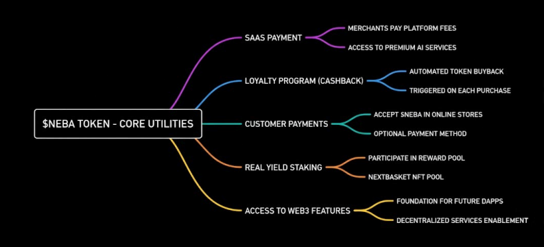 Platform; mağaza kurulumunu basitleştirirken, operasyonel süreçleri AI ajanlarıyla optimize eder. $NEBA token ise ödeme, cashback, staking ve gelir paylaşımı mekanizmalarıyla bu sistemin ekonomik merkezini oluşturur.