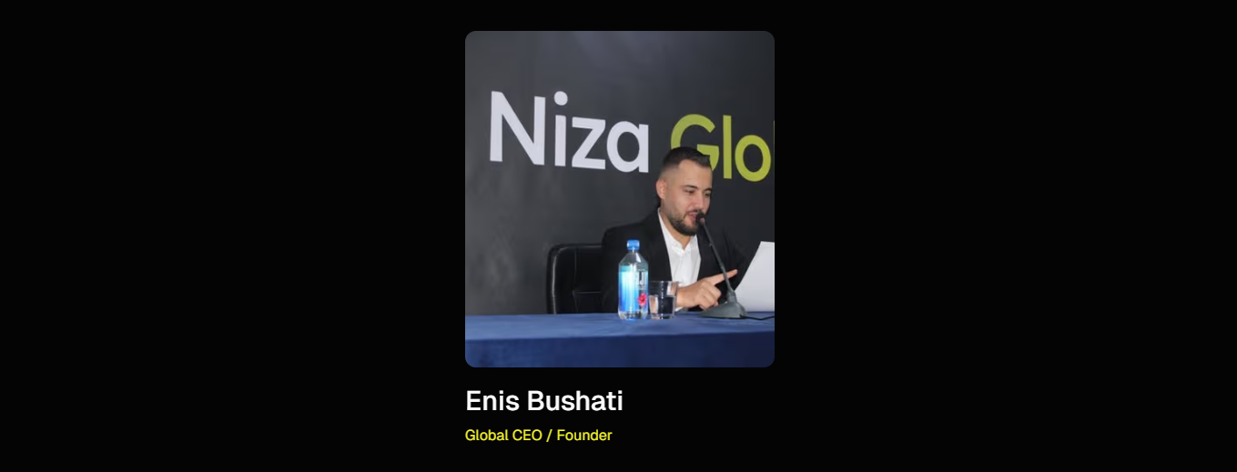 Enis Bushati – Global CEO & Kurucu: Enis Bushati, Niza Global’in Global CEO’su ve kurucusu olarak projenin stratejik yönünü belirleyen isimdir. Bushati, NIZA’nın yüksek performanslı işlem altyapısının ve çok zincirli DeFi vizyonunun hayata geçirilmesinde kilit rol oynamaktadır. Liderliği altında NIZA, ileri düzey işlem teknolojileri, ölçeklenebilir mimari ve uzun vadeli ekosistem büyümesini merkeze alan bir yapı inşa etmeyi amaçlamaktadır.