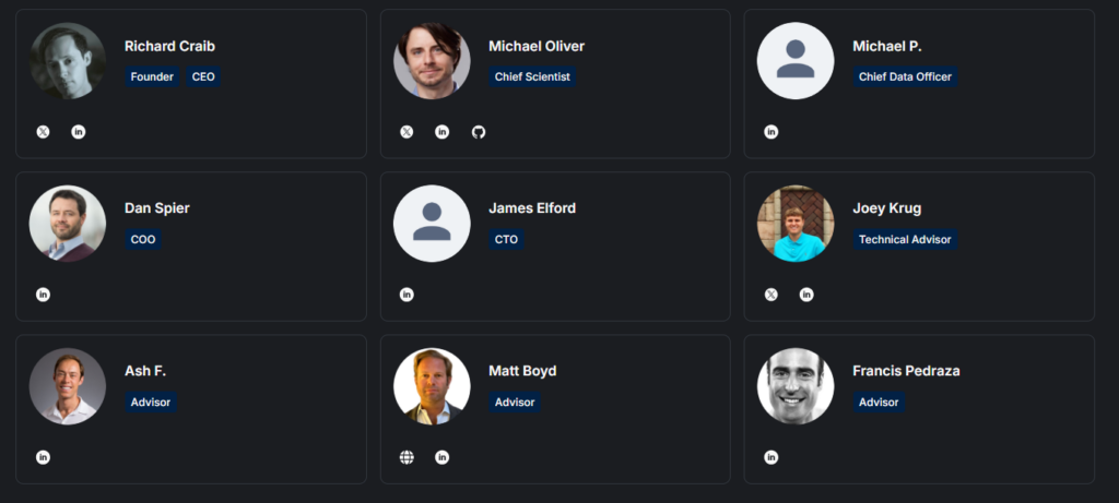 Çekirdek ekip, veri bilimi, makine öğrenimi ve blockchain alanlarında deneyimli uzmanlardan oluşur. Dışarıdan danışman ve yatırımcı desteği, projenin teknolojik ve stratejik gelişimini güçlendirmektedir.