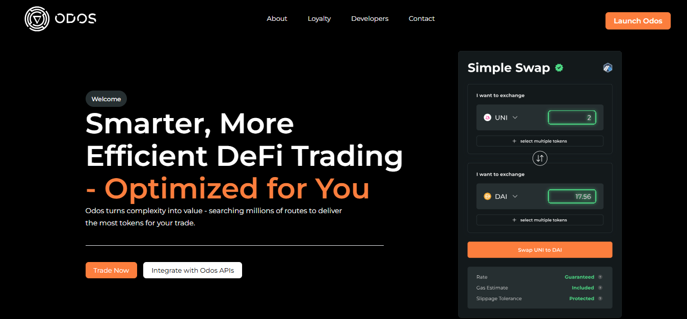 Odos, hem bireysel hem de kurumsal kullanıcılar için tasarlanmış; en iyi fiyatı, en düşük kaymayı (slippage) ve en verimli işlem rotasını sunmayı amaçlayan çok zincirli bir DeFi altyapısıdır.