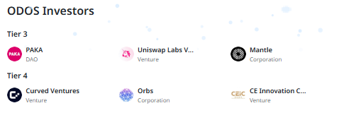 Odos, yalnızca teknik altyapısı ve ürün çeşitliliğiyle değil, aynı zamanda arkasındaki yatırımcı profiliyle de DeFi ekosisteminde dikkat çeken projelerden biridir. Proje, hem Web3-native fonlardan hem de sektörün önde gelen kurumsal aktörlerinden destek alarak uzun vadeli büyüme vizyonunu güçlendirmiştir.