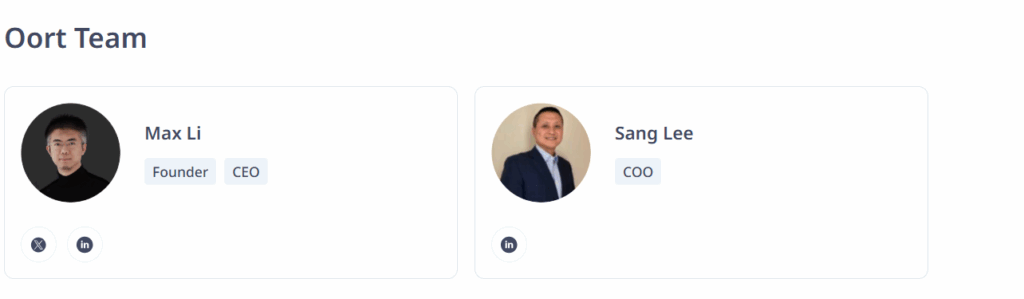 OORT’un çekirdek ekibi, Columbia Üniversitesi, Qualcomm, AT&T ve J.P. Morgan gibi tanınmış kuruluşlardan gelmekte ve projeye teknoloji ve finans alanında önemli bir uzmanlık katmaktadır.