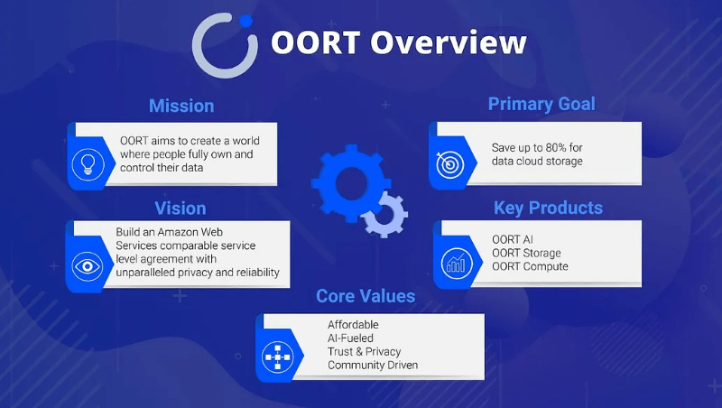 OORT, merkezi olmayan, doğrulanabilir bir bulut bilişim platformudur ve “merkezi olmayan yapay zeka için veri bulutu” olarak hizmet vermektedir. Bireylerin ve işletmelerin yapay zeka verilerini toplamasına, işlemesine ve bunlardan gelir elde etmesine olanak tanıyan uçtan uca bir çözüm sunar. Projenin misyonu, merkezi yapay zeka sistemlerindeki güven eksikliği, gizlilik ve güvenlik endişeleri ile önyargılı veriler gibi temel sorunları ele alarak “insanlık için güvenilir yapay zekayı” mümkün kılmaktır.