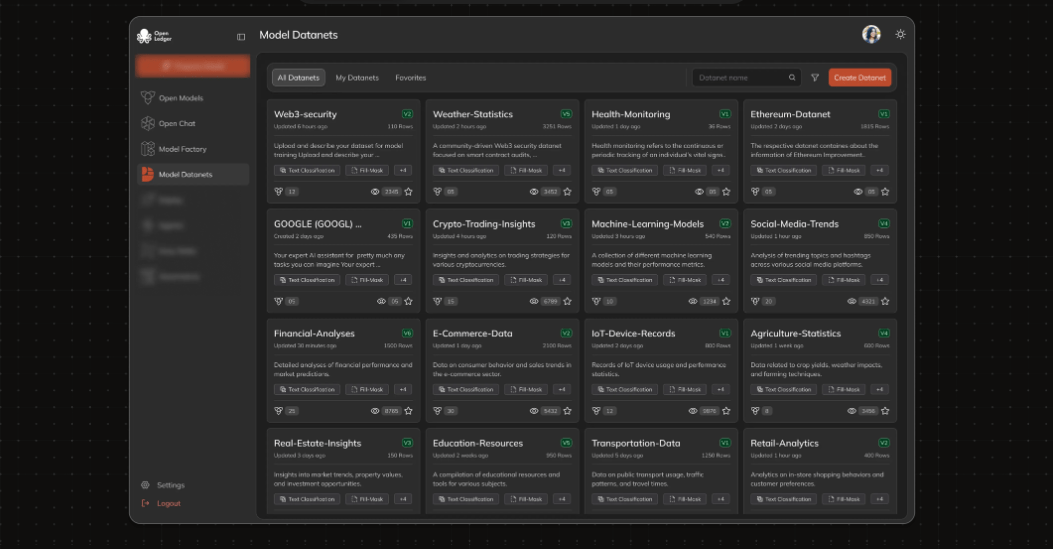 2. Datanets Oluşturma ve Katkı: Yeni Datanets oluşturulabilir veya mevcut veri setlerine veri eklenir. Her katkı zincir üstünde doğrulanır ve ödüllendirilir.