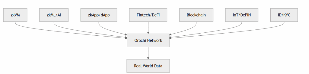 Orochi Network, özellikle zkVM, zkML/AI, zkApp/dApp, DeFi/Fintech, IoT/DePIN ve ID/KYC alanlarında uygulama imkânı sunar.