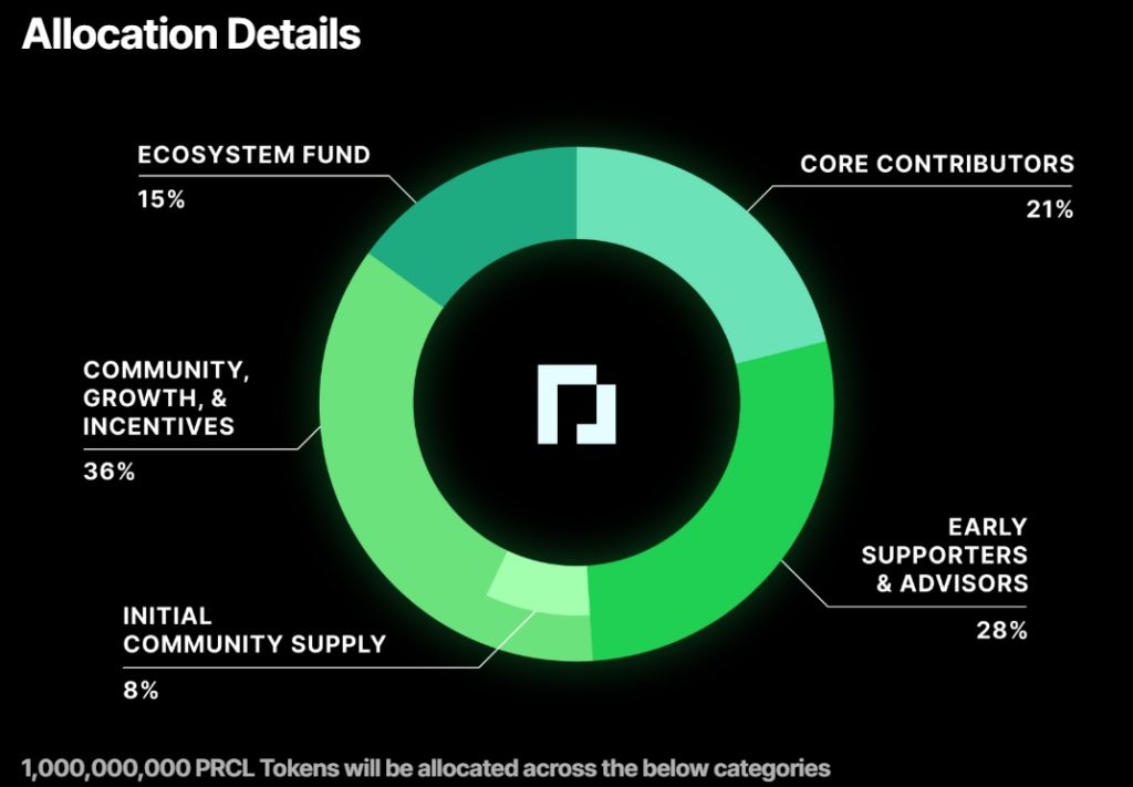 PRCL’nin toplam arzı 1 milyar adet olarak sabitlenmiş. Token ekonomisi şu şekilde planlanmış: