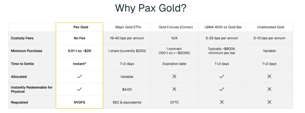 PAX Gold’un Başlıca Farklılaştırıcı Özellikleri