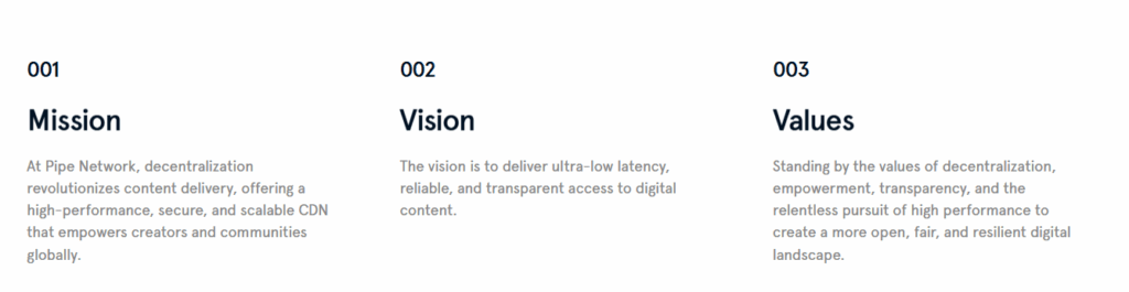 • Misyon: Merkeziyetsiz, yüksek performanslı ve güvenli bir CDN ile içerik oluşturucuları ve toplulukları güçlendirmek.