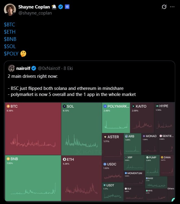 Coplan, paylaşımında “$BTC $ETH $BNB $SOL $POLY” ifadelerini kullanarak potansiyel tokenin piyasadaki en büyük kripto varlıklar arasında yer alabileceğini ima etti. Bu paylaşım, hem yatırımcılar hem de kripto topluluğu arasında POLY tokeni olasılığına dair spekülasyonları artırdı.