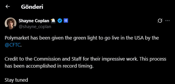Polymarket, 2022 yılında düzenleyici belirsizlikler nedeniyle ABD’deki faaliyetlerini durdurmuştu. Ancak şirketin CEO’su Shayne Coplan, Eylül ayında yaptığı açıklamada, platformun yeniden faaliyete geçmesi için yeşil ışık aldıklarını duyurmuştu. Modabber, önceliğin şu anda U.S. app lansmanı olduğunu vurgulayarak şunları söyledi: