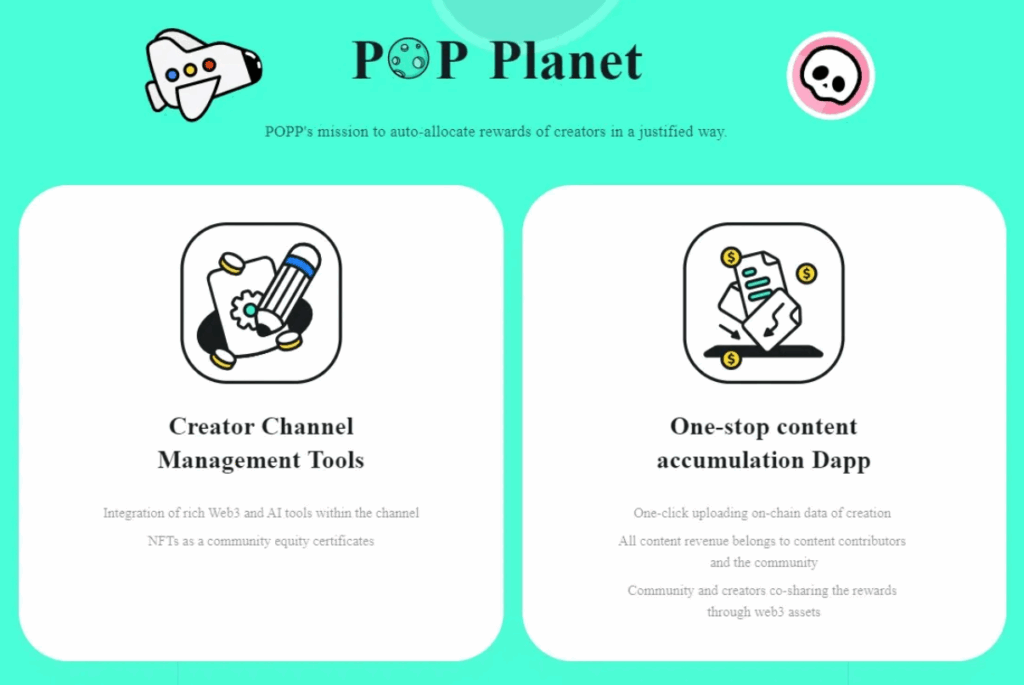 - PoP Planet: Ana dApp, creator monetizasyon ve ödüller.