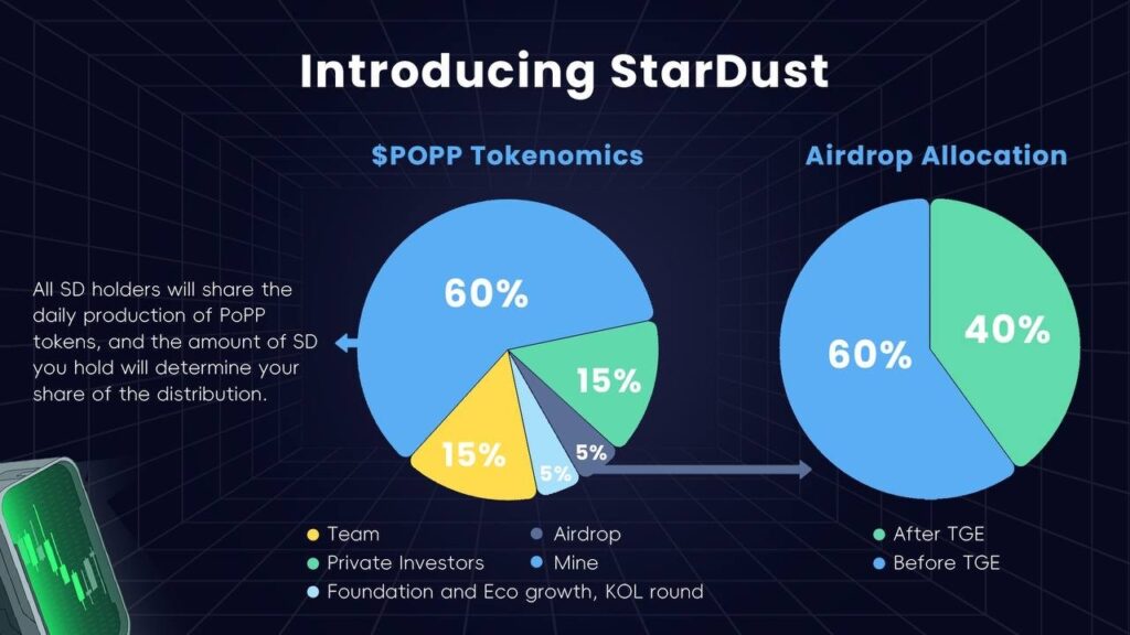 - Token Madencilik Programı: Toplam arzın %60’ı (600M $PoPP) kullanıcı etkinlikleriyle kazanılabilir.