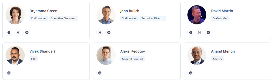 Dr. Jemma Green (Yönetim Kurulu Başkanı): Finans ve risk danışmanlığında 15 yılı aşkın deneyimiyle, sürdürülebilir şehirler ve blokzincir tabanlı enerji çözümleri üzerine çalışıyor.