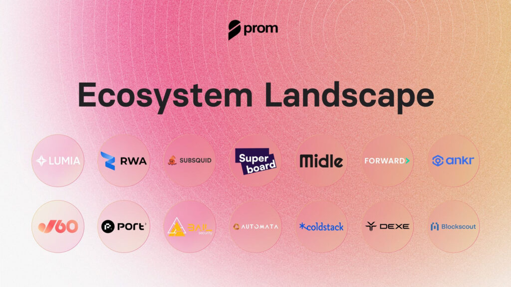 Prom, ekosistemini güçlendirmek için çeşitli stratejik ortaklıklar kurmuştur. Polygon Technology, ağın temel altyapısı olan CDK ile Prom’u desteklerken, Automata Network modüler attestation katmanı ile geliştirici araçlarını güçlendirmektedir. Bailsec, Prom’un güvenlik partneri olarak akıllı sözleşme denetimleri ve güvenlik hizmetleri sunmaktadır. Ayrıca, Blockscout gibi EVM araçlarıyla entegrasyonlar, ağın şeffaflığı ve yönetilebilirliği açısından önem taşımaktadır.