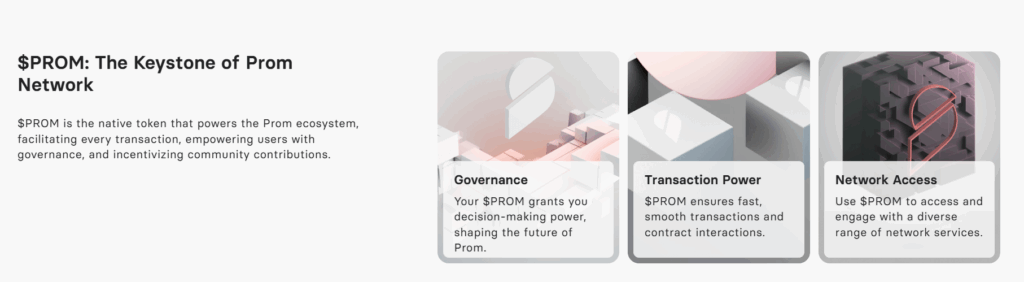 Prom ekosisteminde kullanılan PROM, ağın yerel tokenidir ve MATIC’in Polygon’daki rolüne benzer şekilde; işlem ücretleri, ağ güvenliği ve yönetim mekanizmalarında önemli bir rol oynar.