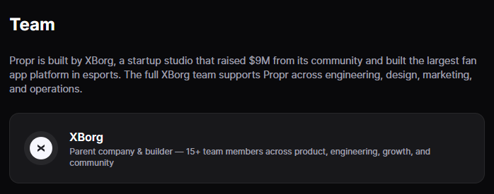 Propr (PROP) Destekçileri ve Ekibi