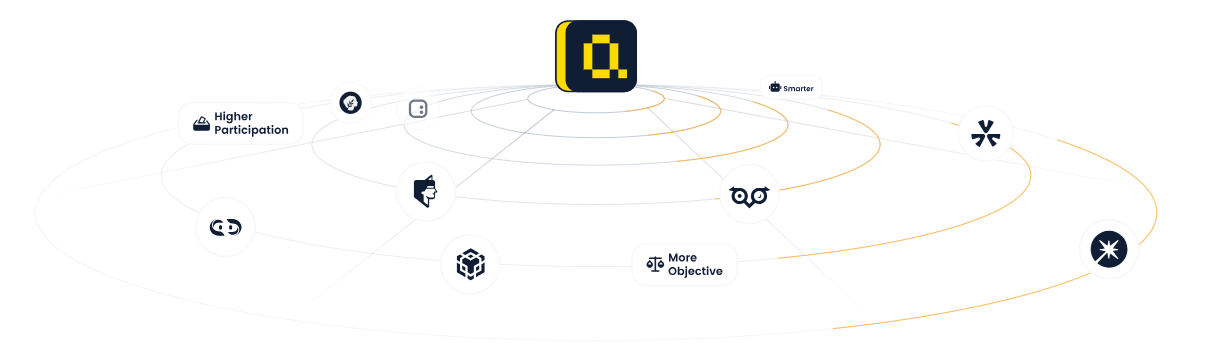 Quack.AI (Q), merkeziyetsiz organizasyonlarda karar alma süreçlerini otomatikleştiren, modüler ve tak-çalıştır bir yönetim altyapısıdır. Teklif oluşturma, risk değerlendirme, oylama ve yürütme için yapay zeka destekli araçlar sunar ve birden fazla blok zinciri ağında çalışarak yönetişimin ölçeklenebilir şekilde işlemesini sağlar.