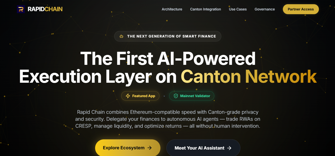 Rapidchain, Canton Network üzerine inşa edilmiş, yüksek performanslı ve programlanabilir bir altyapı sunarak geleneksel finans ile blokzincir dünyası arasında köprü kurmayı amaçlar. Platformun temel yaklaşımı, yürütme (execution) ve mutabakat (settlement) süreçlerini birbirinden ayırarak her iki katmanın da en verimli şekilde çalışmasını sağlamaktır.