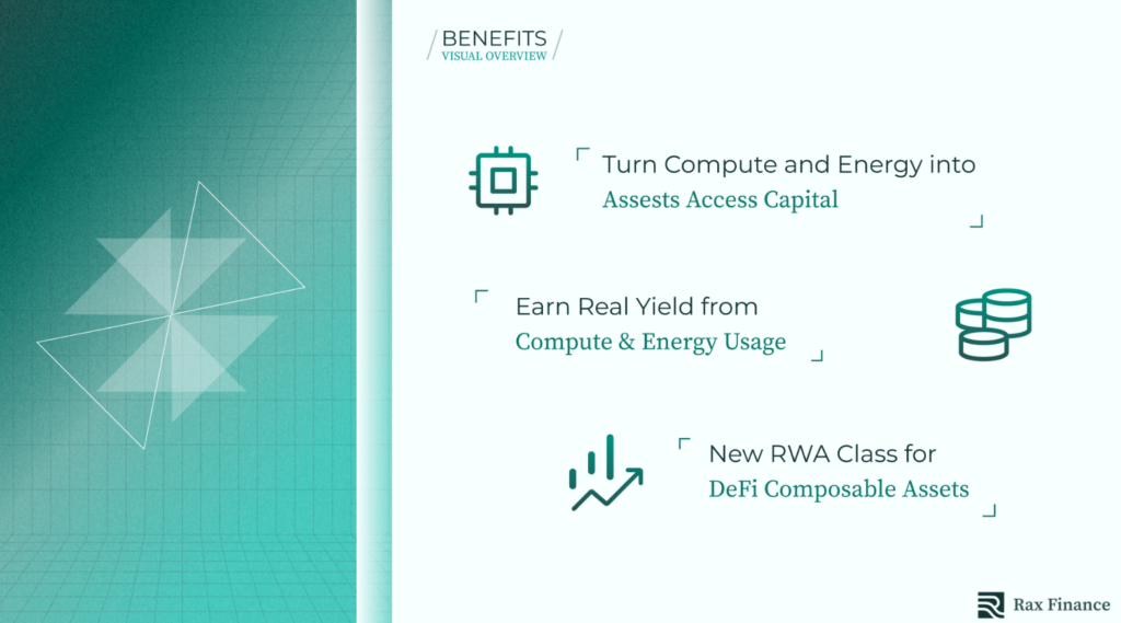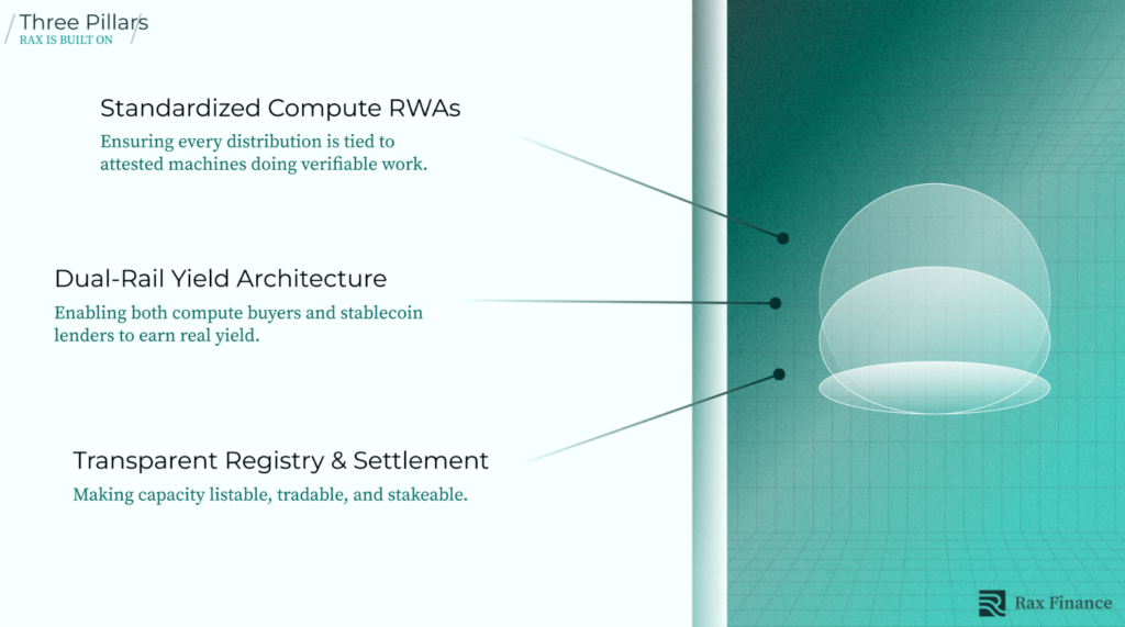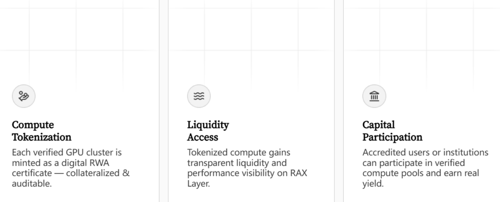 RAX, veri merkezlerindeki GPU’ları ve onları çalıştıran elektriği zincire taşıyor. Bunu da alınıp satılabilen, getiri üreten dijital varlıklara dönüştürüyor.