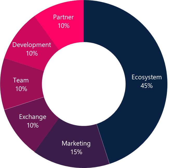 Ecosystem (Ekosistem): %45 → NFT satışı, kullanıcı ödülleri, staking, içerik geliştirme