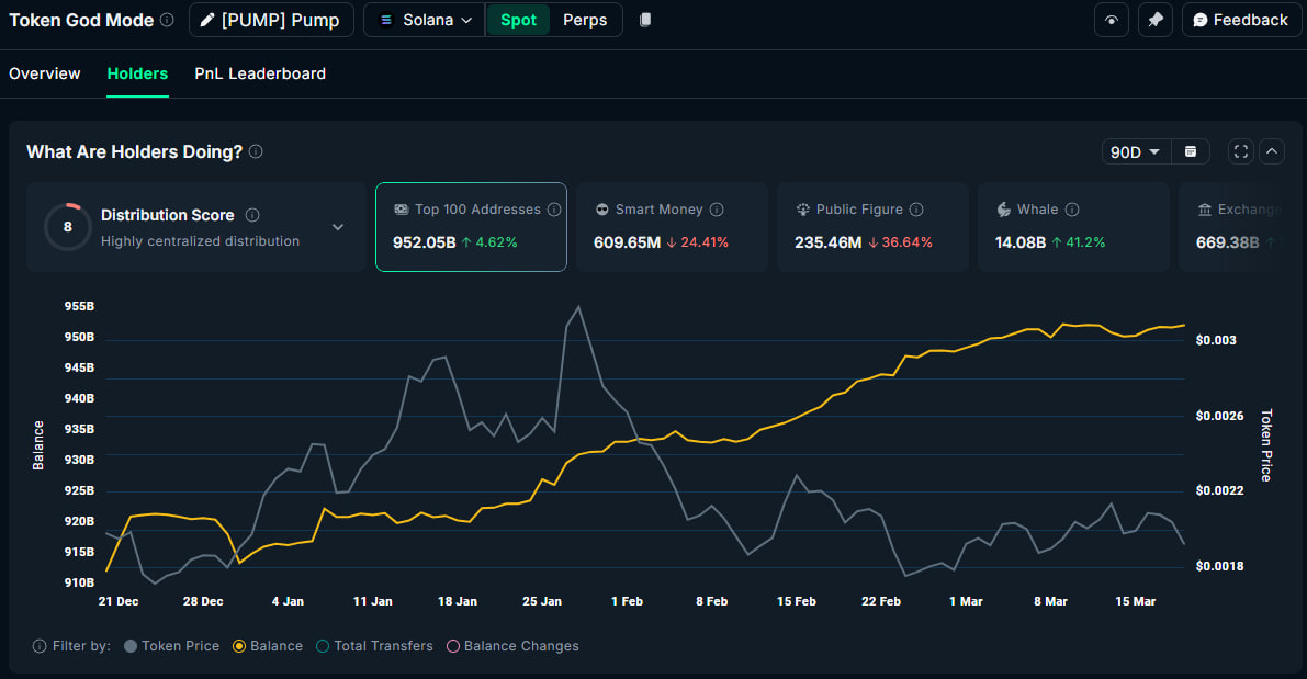 • En büyük 100 cüzdan, PUMP varlıklarını %4,6 oranında artırdı
