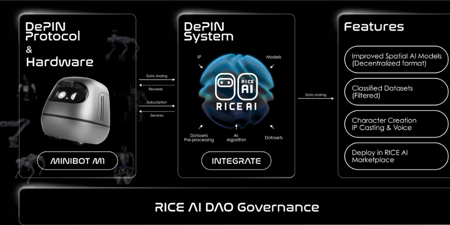 Rice AI ($RICE), yapay zeka ve robotik alanında blockchain teknolojisi ve DePIN protokollerini birleştiren merkeziyetsiz bir veri ağı platformudur. Bu yaklaşım, robotik şirketlerinin AGI (Artificial General Intelligence) geliştirmek için gerekli eğitim verilerini toplama ve paylaşma şeklini dönüştürmeyi hedefler.