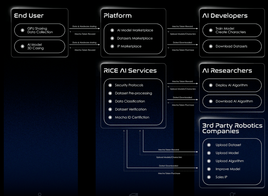 - Merkeziyetsiz Veri Toplama: Robotlar ve şirketler, veri paylaşarak $RICE token kazanır.