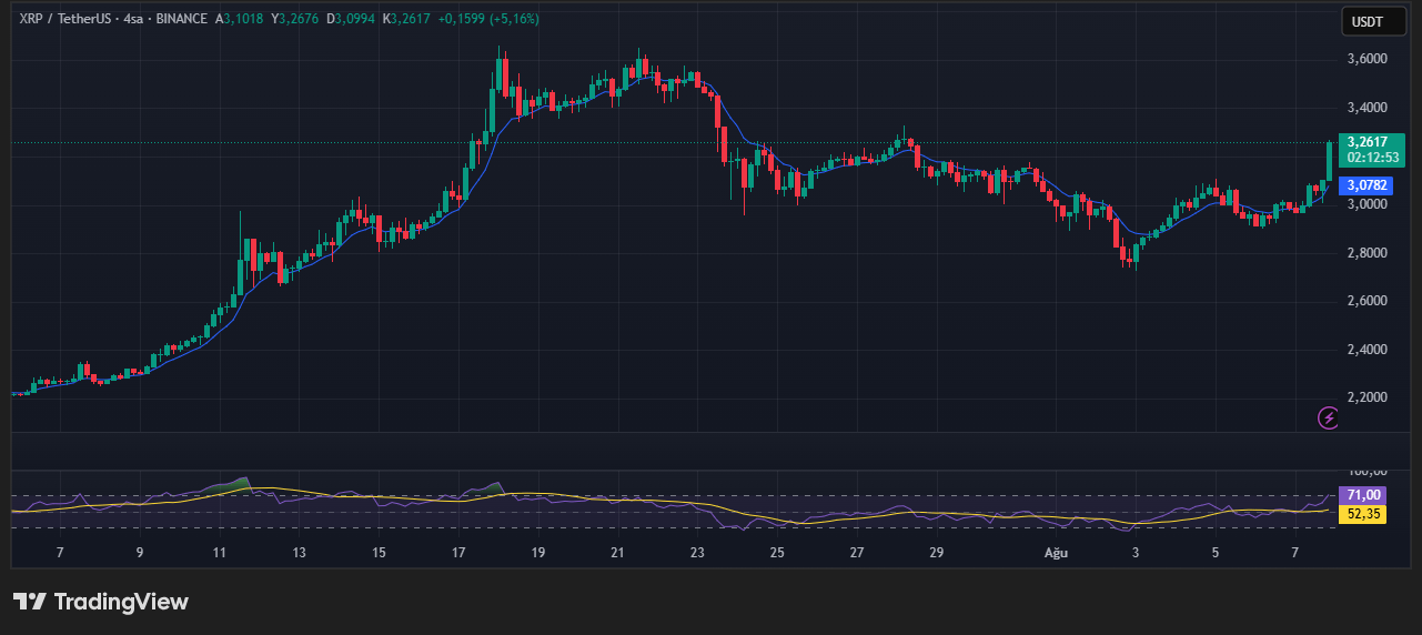 SEC ile Ripple arasındaki yaklaşık beş yıllık davanın tarafların temyiz taleplerinden feragat etmesiyle resmen sona ermesi, XRP fiyatında güçlü bir yukarı yönlü harekete neden oldu. Günlük bazda yaklaşık %10 oranında değer kazanan XRP, yazım sırasında 3,26 dolar seviyesini test etti. Bu yükseliş, yatırımcıların hukuki belirsizliklerin ortadan kalkmasına yönelik olumlu tepkisini yansıtırken, Ripple’ın ABD’deki regülasyon ortamında daha net bir konuma geçmesi de fiyat hareketini destekleyen temel faktörlerden biri olarak öne çıkıyor.