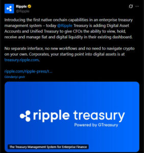 Ripple, kurumsal finans dünyasında önemli bir dönüşüm yaratabilecek yeni ürününü duyurdu. Şirket, “Digital Asset Accounts” ve “Unified Treasury” çözümleriyle işletmelerin fiat ve dijital varlıkları tek bir platform üzerinden yönetmesini mümkün hale getiriyor. Bu yeni yapı sayesinde şirketler, farklı sistemler arasında geçiş yapmak zorunda kalmadan tüm finansal varlıklarını entegre bir şekilde izleyip yönetebilecek. Özellikle CFO’lar ve hazine ekipleri için tasarlanan bu çözüm, operasyonel verimliliği artırırken aynı zamanda maliyetleri ve süreç karmaşıklığını azaltmayı hedefliyor. Bu adım, Ripple’ın yalnızca sınır ötesi ödeme çözümleri sunan bir şirket olmanın ötesine geçerek, tam kapsamlı bir kurumsal finans teknolojisi sağlayıcısına dönüşme stratejisinin önemli bir parçası olarak görülüyor.