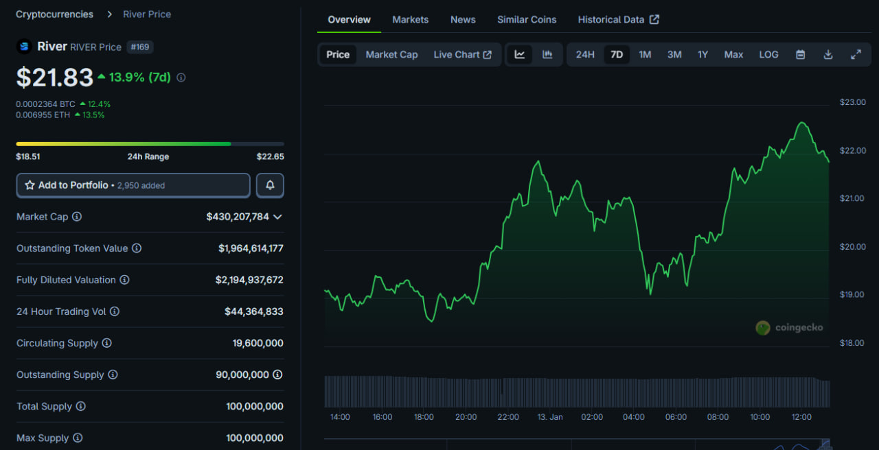 RIVER, global kripto piyasasının toplam değerindeki %0,38’lik artışa karşın, kendi rotasında belirgin bir pozitif ayrışma sergiliyor. Bu yükselişin temel nedenleri arasında şunlar öne çıkıyor: